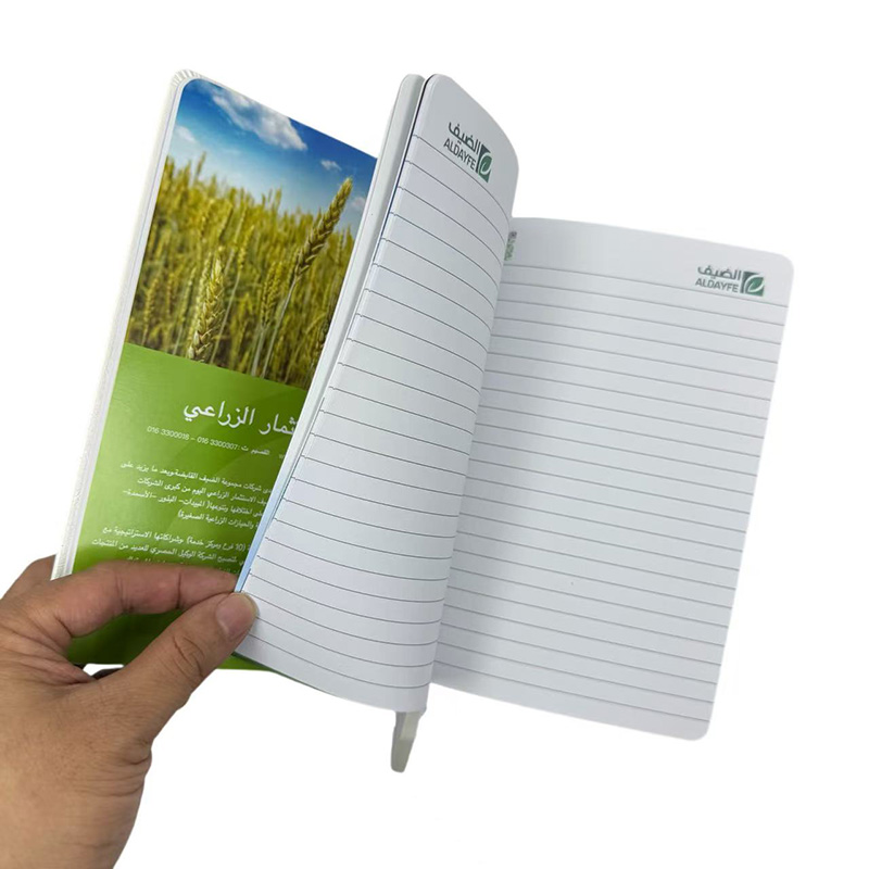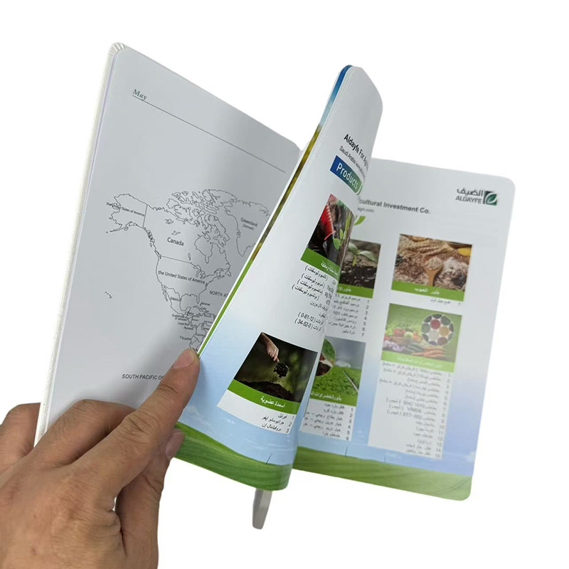 Denna arabiska anteckningsbok är en exklusiv produkt som är speciellt anpassad för kunder i kungariket Saudiarabien. Omslaget är tillverkat av vitt stjärnkläder, med färgglad UV -utskriftslogotyp, som visar sin unika charm. Den inre sidan integrerar personliga tänkande kartor och QR-koder för företag, globala kartor, 2025-2026-kalendrar, introduktioner av företag, produktintroduktioner och annat innehåll: Världskartan belyser den geografiska platsen för Saudiarabien. Oavsett om du är en lokal entreprenör eller en säljare, kan du enkelt planera rutter eller översätta affärsomfånget, vilket är mycket praktiskt. Använda. Den inre sidan använder högkvalitativt vitt skrivpapper för att säkerställa smidig skrivning och inget bläck. Det är ett utmärkt verktyg för snabba anteckningar, dagliga planer eller kreativitet. Den inre sidan är också tryckt med den exklusiva "Aldayfe" -logotypen och QR -koden. Du behöver bara skanna den med din mobiltelefon för att få företagsinformation och kontaktinformation när som helst.